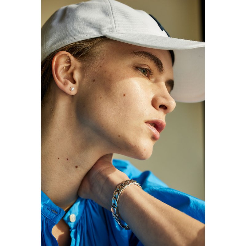 Shinzoneの大定番となっている「CADEAUX」のパールシリーズ。こちらは、CADEAUX PEARL EARRINGSより少し小さい5㎜のパールでオーダーした別注ピアスです。スエットやTシャツなどカジュアルなアイテムによく馴染み、毎日つけても飽きません。