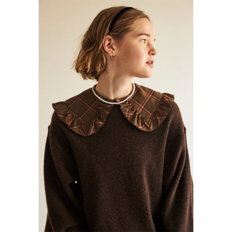 大きく開けたシャツの胸元や、デコルテの見えるトップスと合わせると、上品な着こなしに仕上がります。