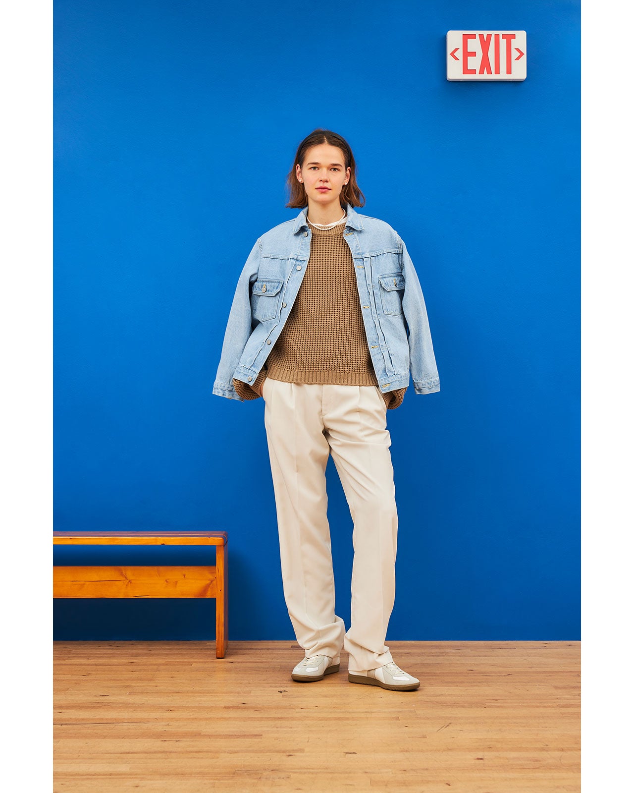 古着屋に並ぶ“おじさんパンツ”をヒントに、メンズの工場で作った、2タックパンツです。