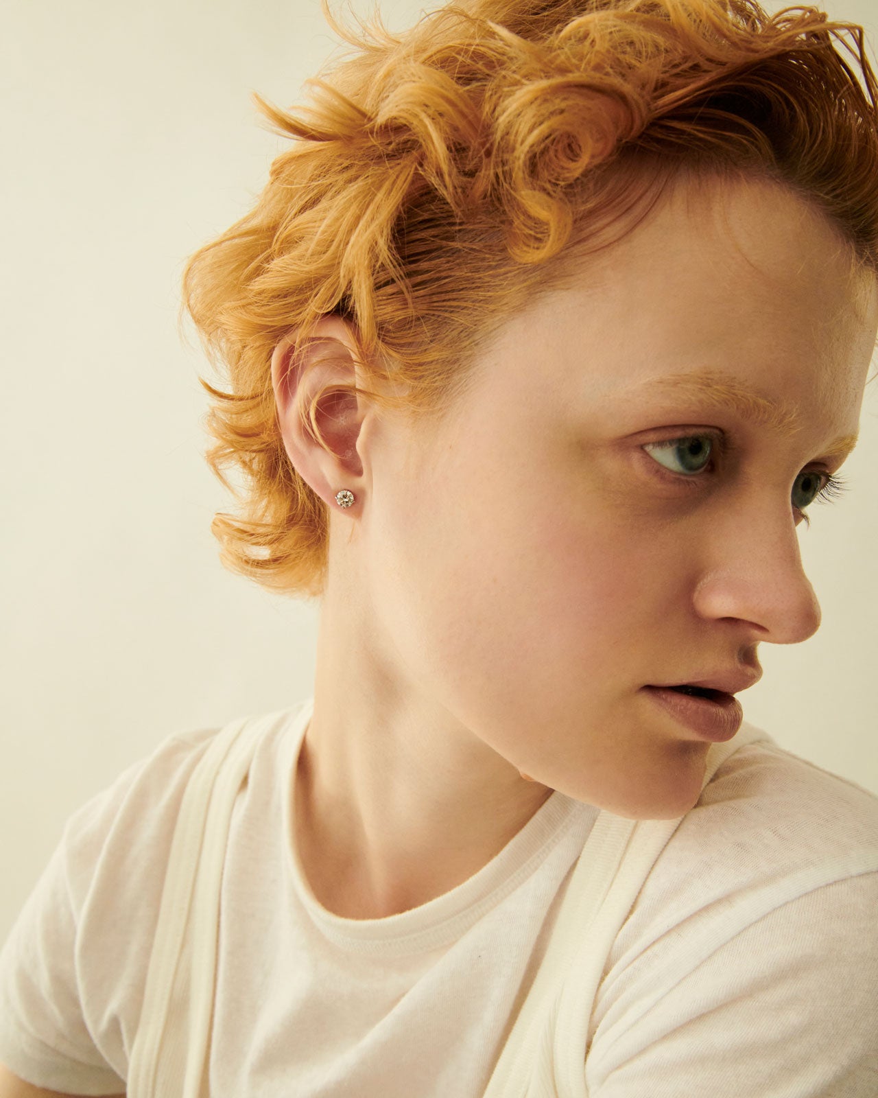地金には10k white goldを使用し、艶やかな鏡面仕上げを施しているため、手持ちのゴールド・シルバージュエリーとのミックススタイルに合わせやすいのも魅力です。