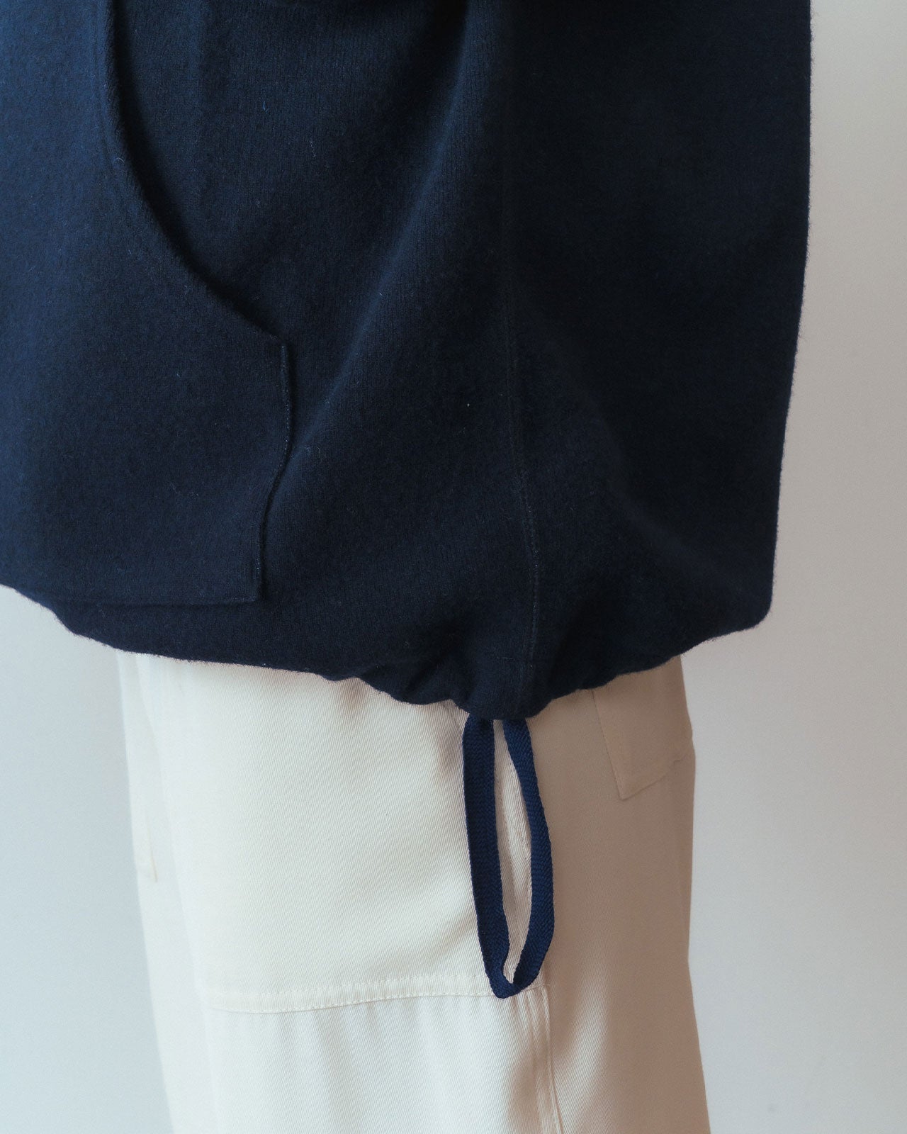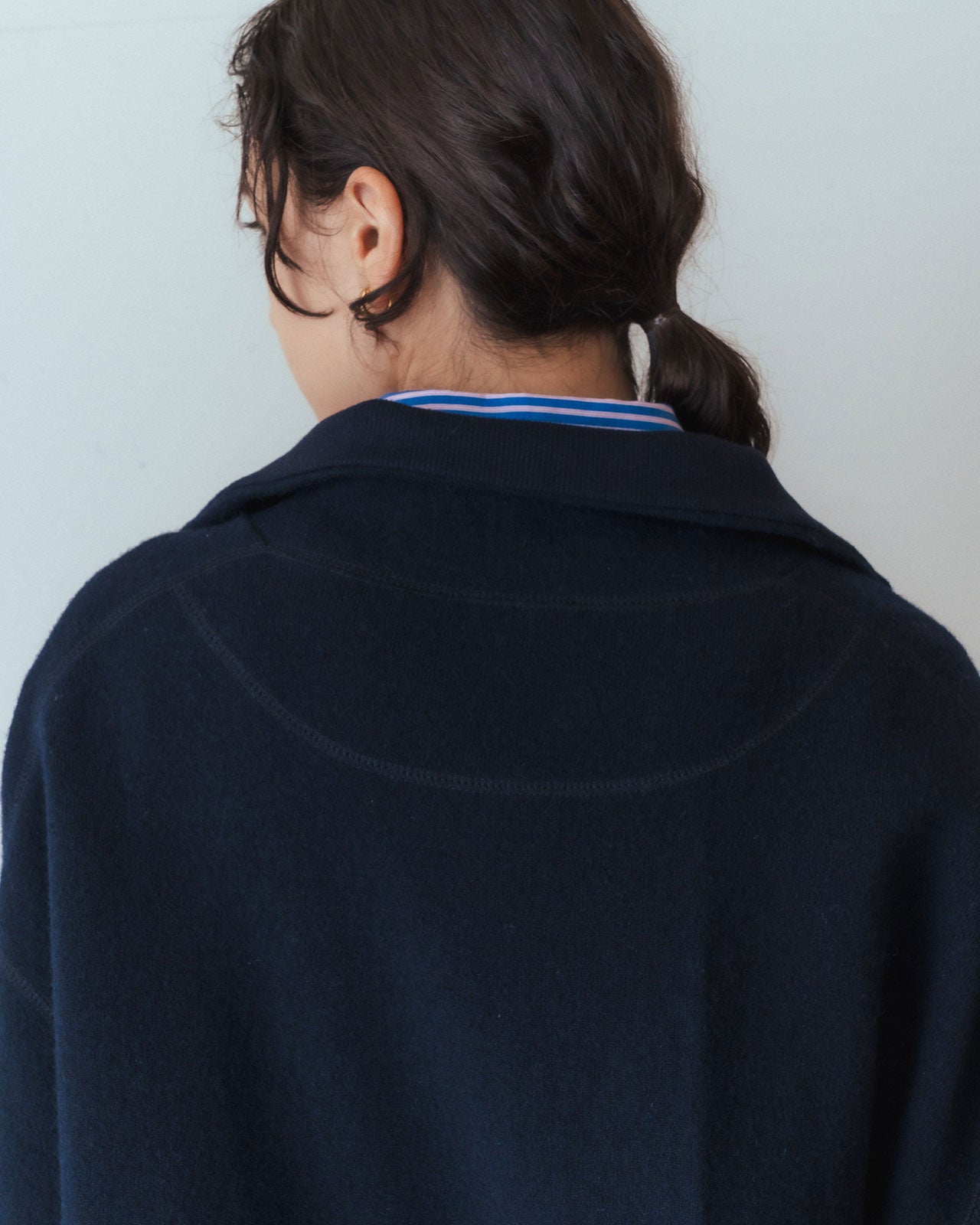 表面にはウォーム感のある紡毛ウール、裏面には肌触りの良いコットンを使用した、肉感のあるダブルフェイスのカットソー素材。とことん着心地にこだわった、カジュアルにしてリュクスな1枚です。アメリカの国花であるバラを描いた織りネームと、裾のコードをさりげないアクセントにしています。インナーにシャツやタートルを覗かせた、レイヤードスタイルでどうぞ。