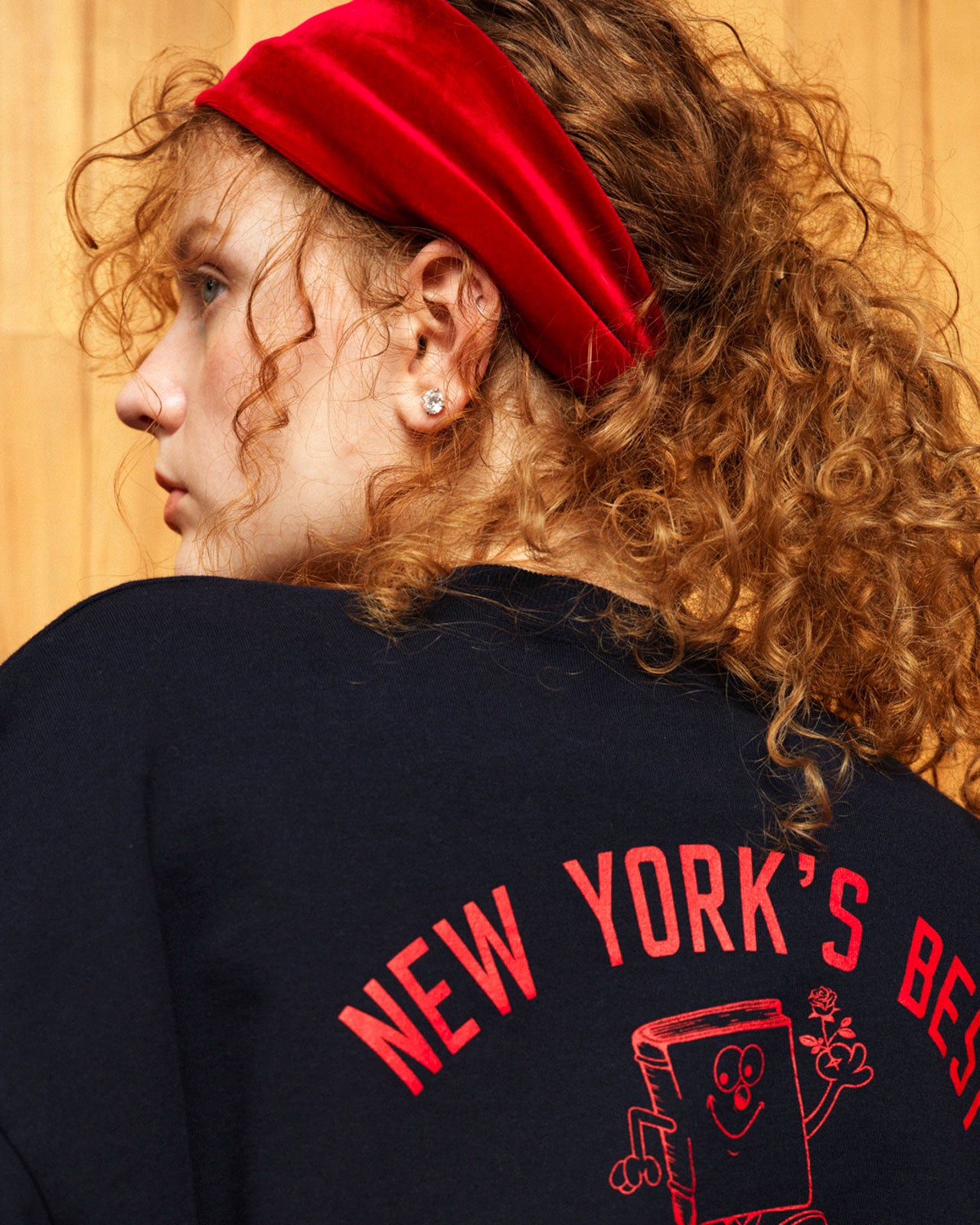 ストレッチ性のあるベロア生地で作ったヘアバンドです。幅広で後ろに小さな結び目が見えるデザイン。オリジナルのゴールドのロゴ入りチャームがきらりと輝きます。