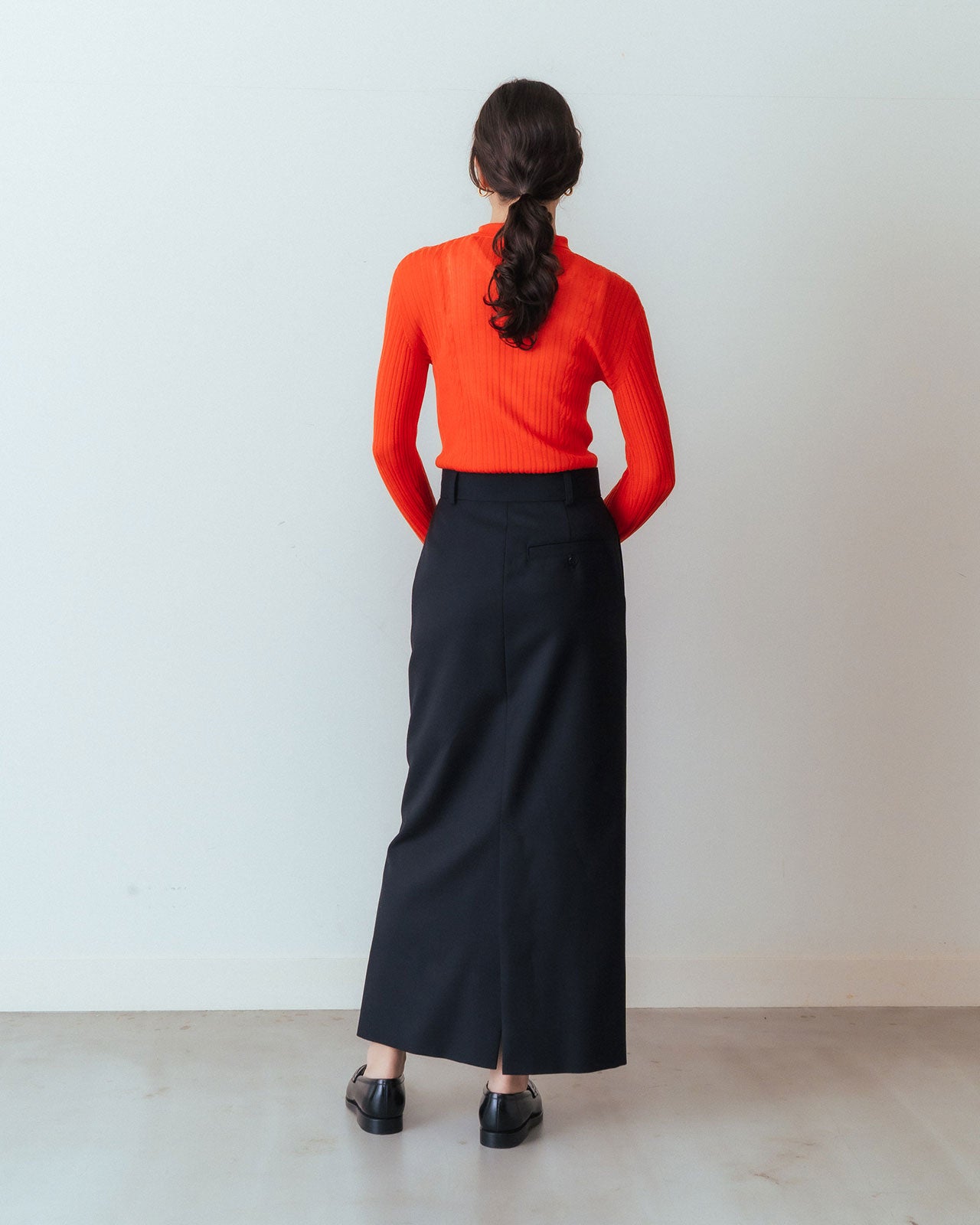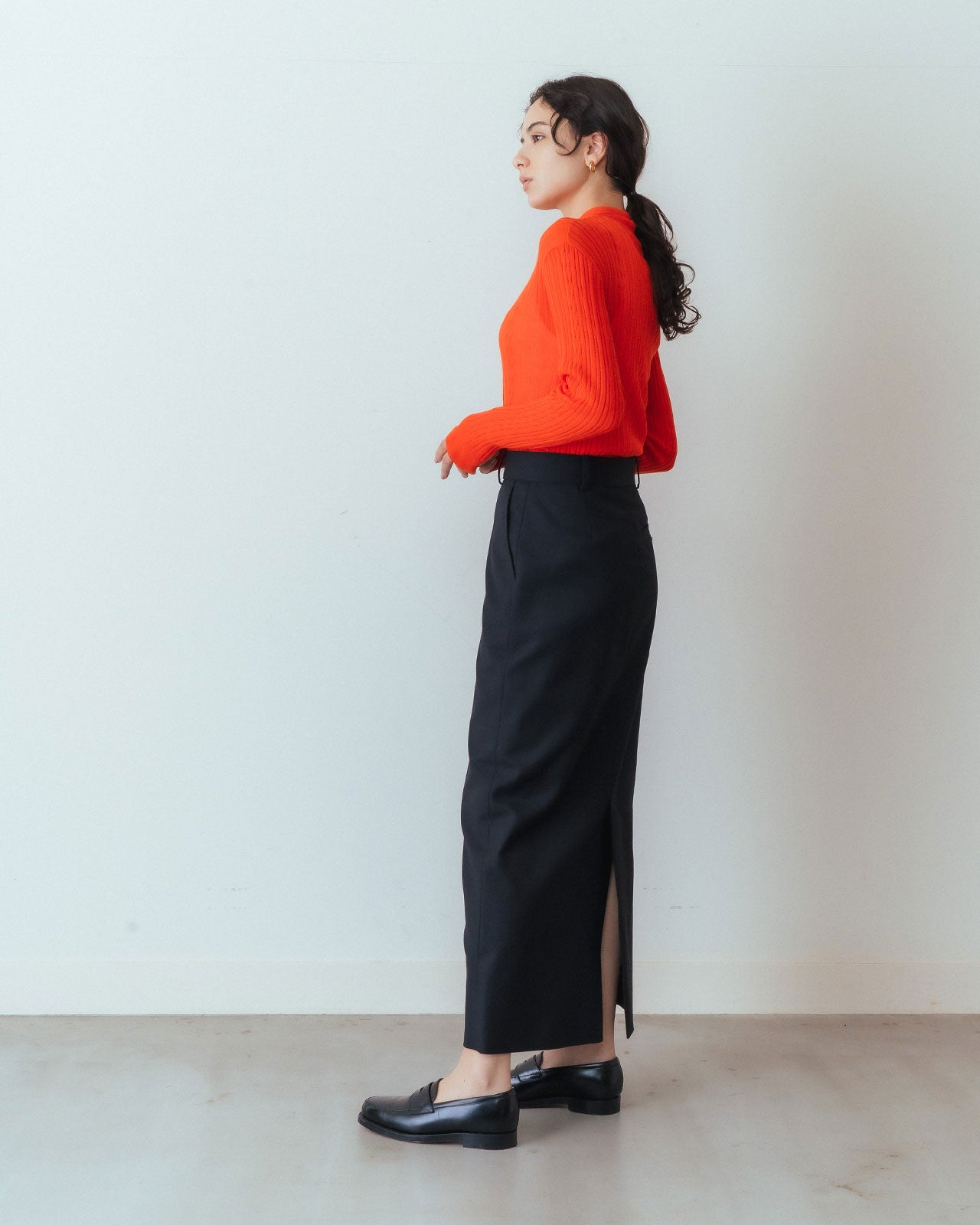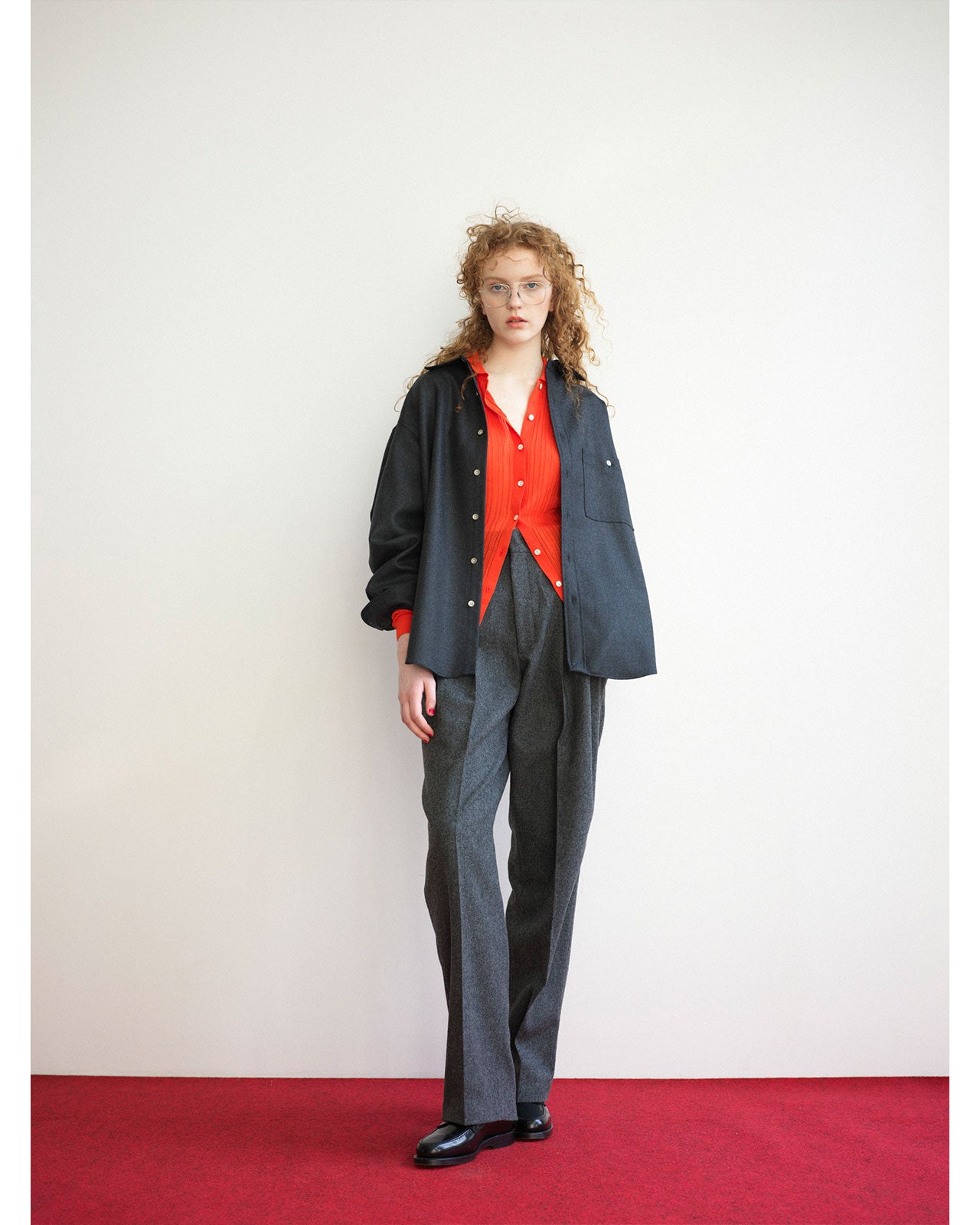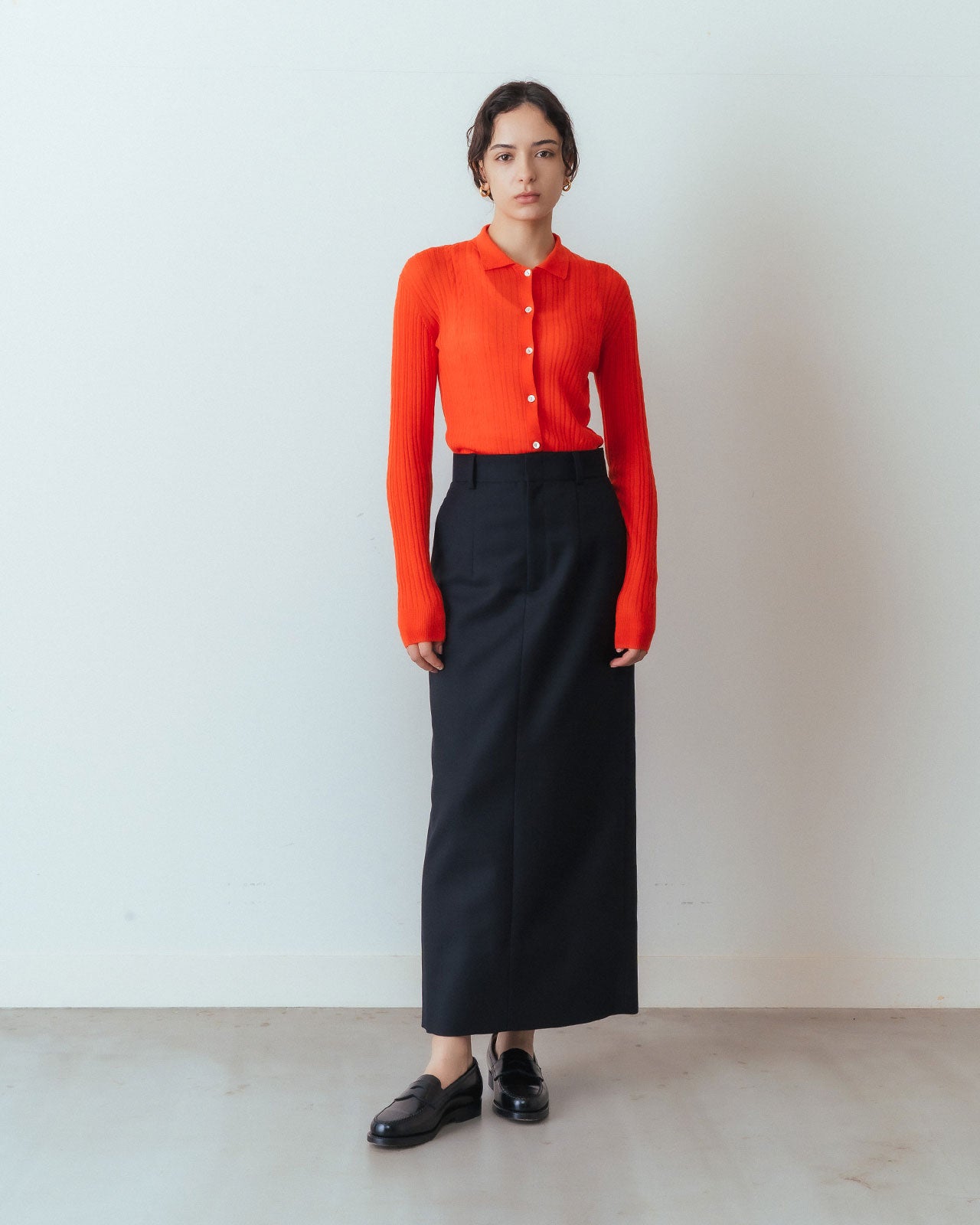 テンセルとカシミア混の糸をハイゲージで編んだカーディガン。身頃は2本の細いケーブル編みを差し込んだランダムリブで仕上げました。タイトなシルエットと程よい透け感が、繊細で知的な印象を与えてくれます。ジャケットやセットアップのインナーとしてもぴったりです。
