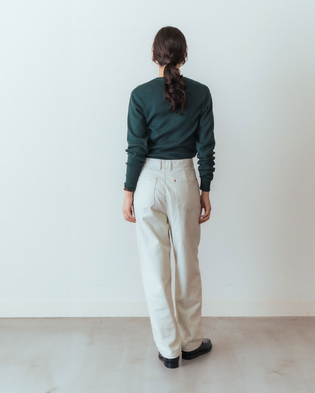厳選されたSUVIN綿の中でも最も上質な超長綿を、細番手である60/1(綿番手)に紡績。3本撚糸した糸を、今や希少となったイギリスのベントレー社の丸編み機を用いて編みあげました。こだわりの素材から生まれたしなやかさと柔らかさ、そして光沢感。さらに、筒状に編みあげたことで、ストレスフリーな着心地を実現しました。一見シンプルでベーシック。けれど素材と編み方に徹底的にこだわった、Shinzone的なものづくりが光る1枚です。リラクシーにしてリュクスな着心地で毎日袖を通したくなる、大人のためのニットです。