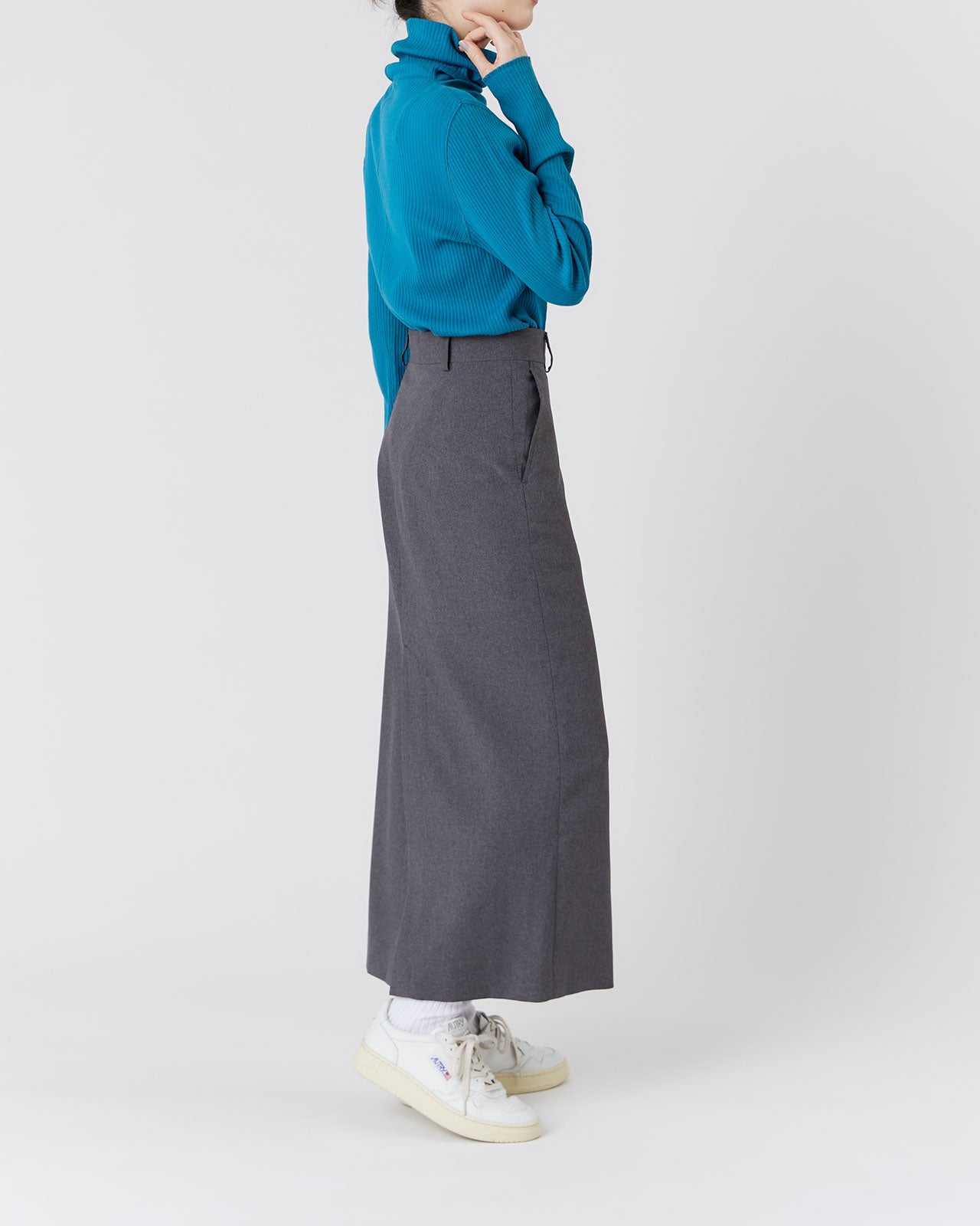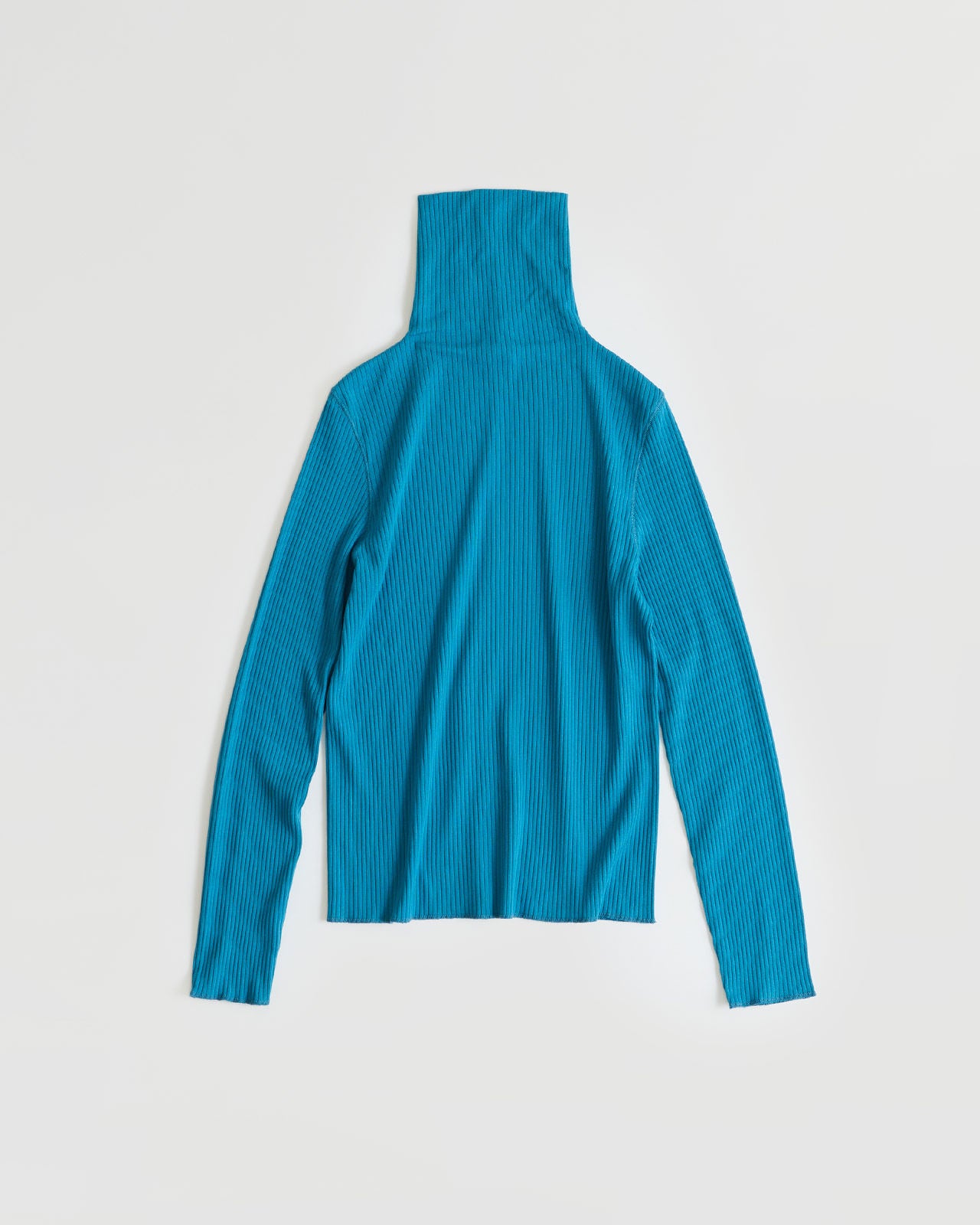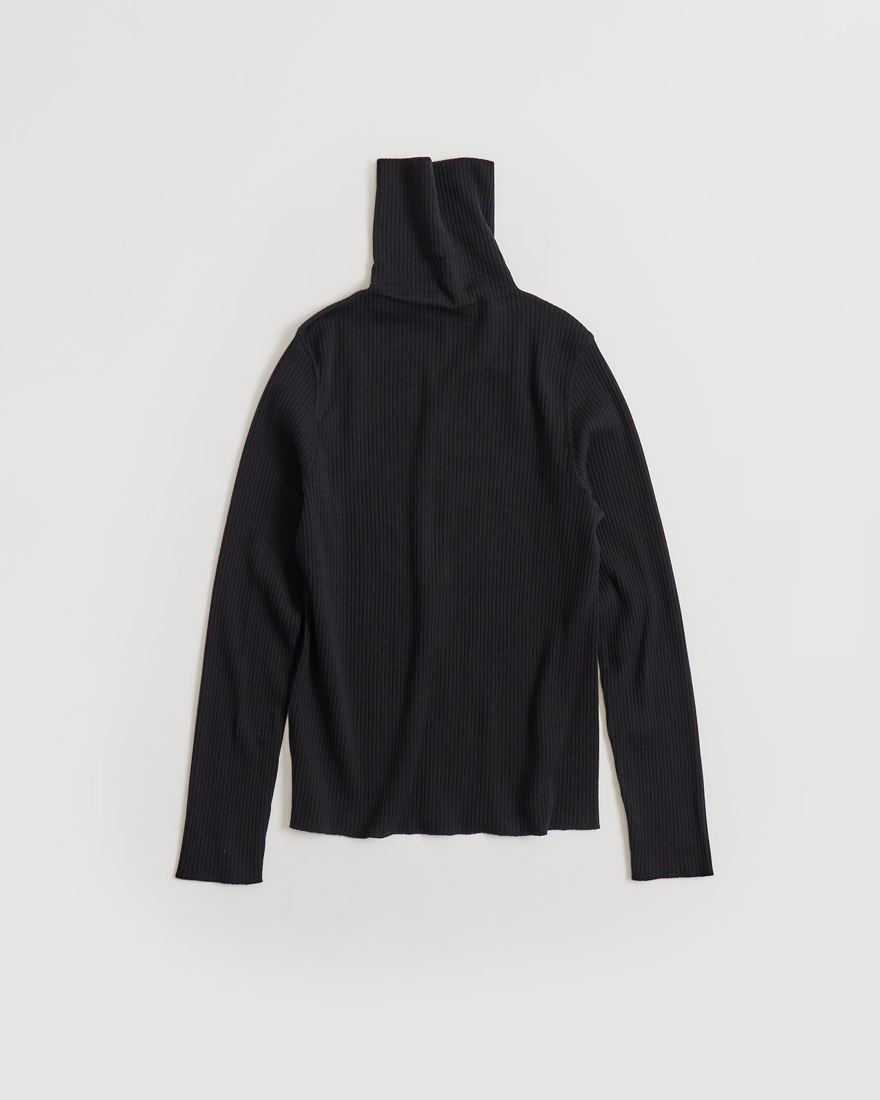 毛羽が少なく、光沢感が上品な印象を与えてくれるハイネックリブ。編み地の 凹凸がフラットなため、上に重ねた洋服のシルエットに響きません。ジャケットやシャツ、ハーフジップスウェットなどのインナーとしてはもちろん、一枚でも活躍する便利なトップスです。