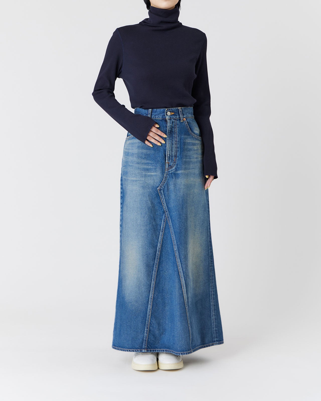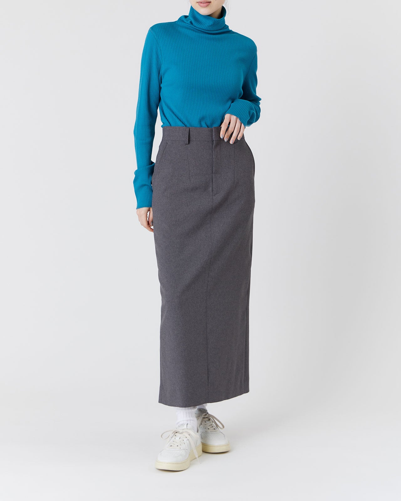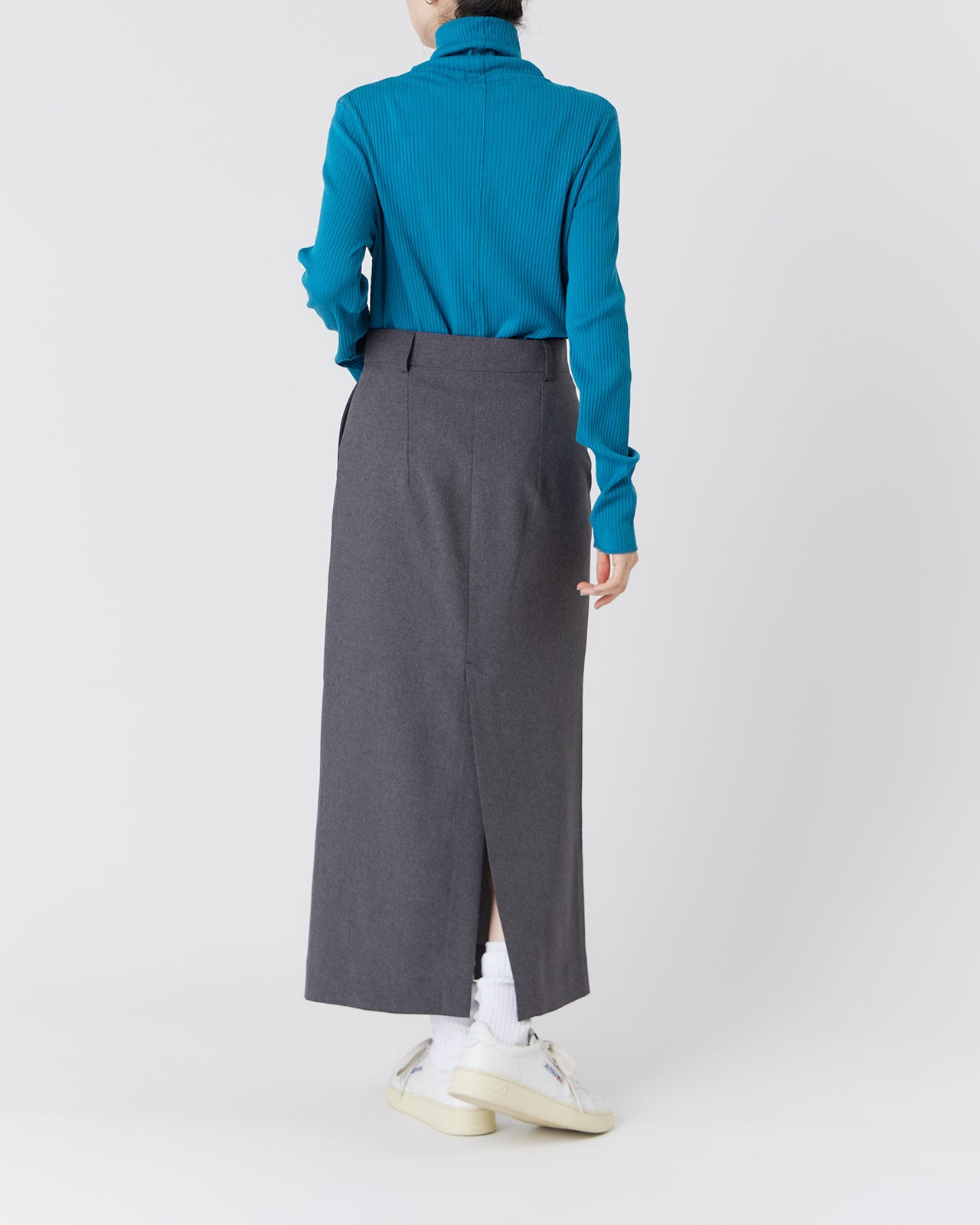 毛羽が少なく、光沢感が上品な印象を与えてくれるハイネックリブ。編み地の 凹凸がフラットなため、上に重ねた洋服のシルエットに響きません。ジャケットやシャツ、ハーフジップスウェットなどのインナーとしてはもちろん、一枚でも活躍する便利なトップスです。