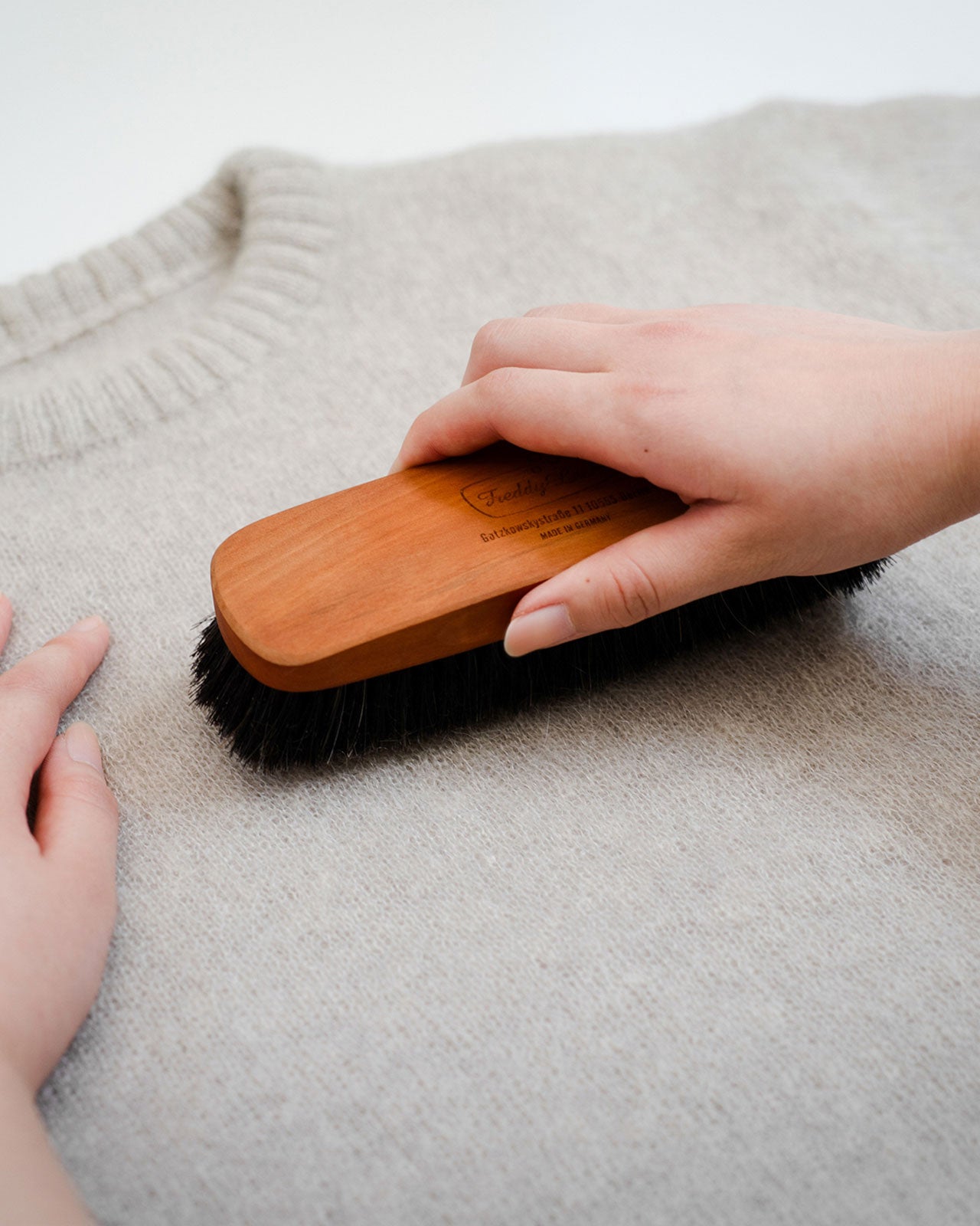 しなやかなコリと弾力性のあるきめ細やかな馬毛は、生地を傷めにくくウールなどのデリケートな衣類のお手入れにお使いください。