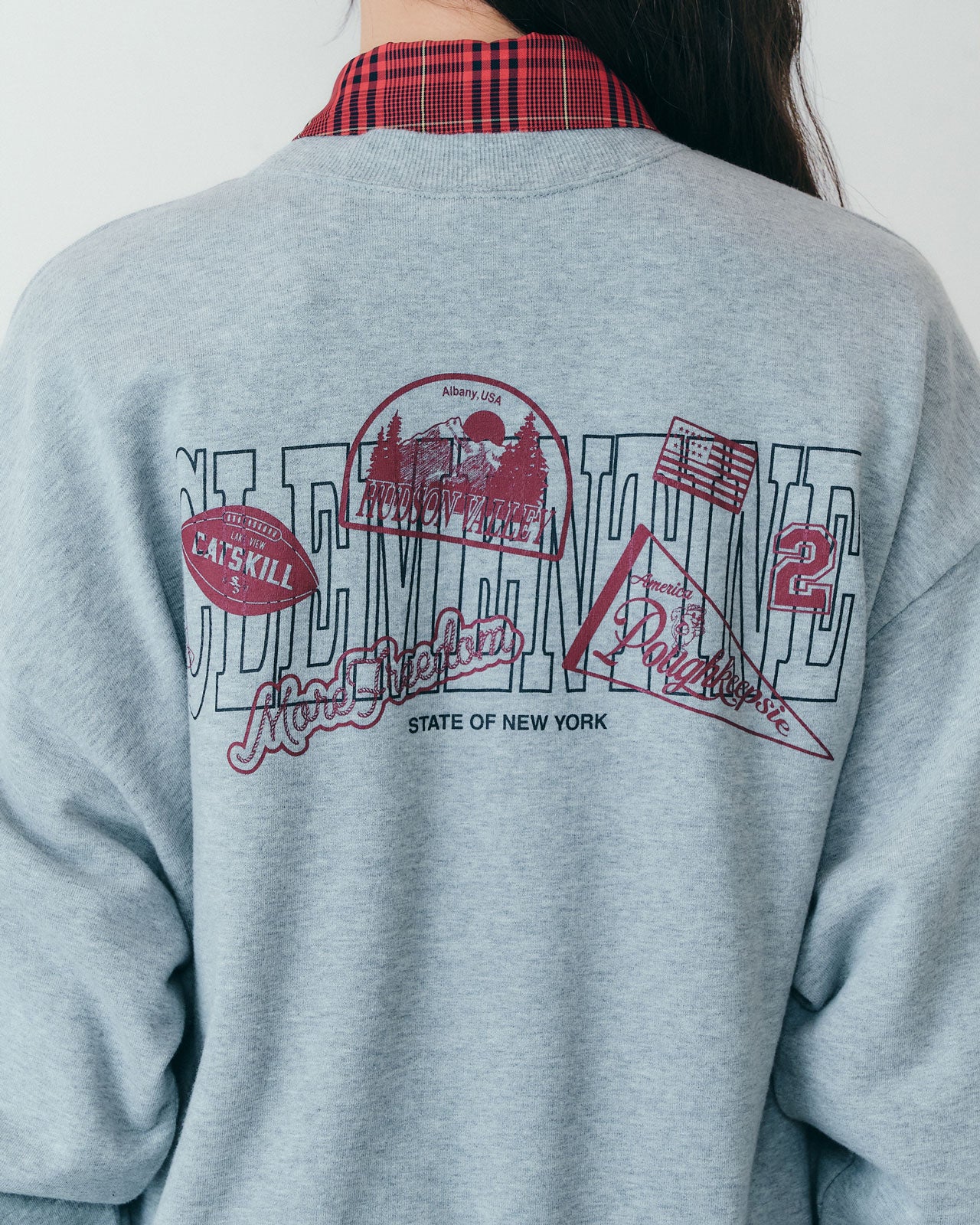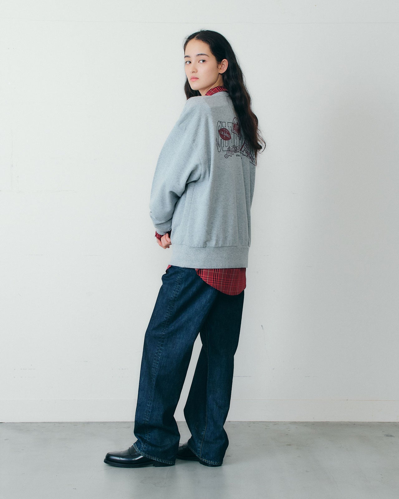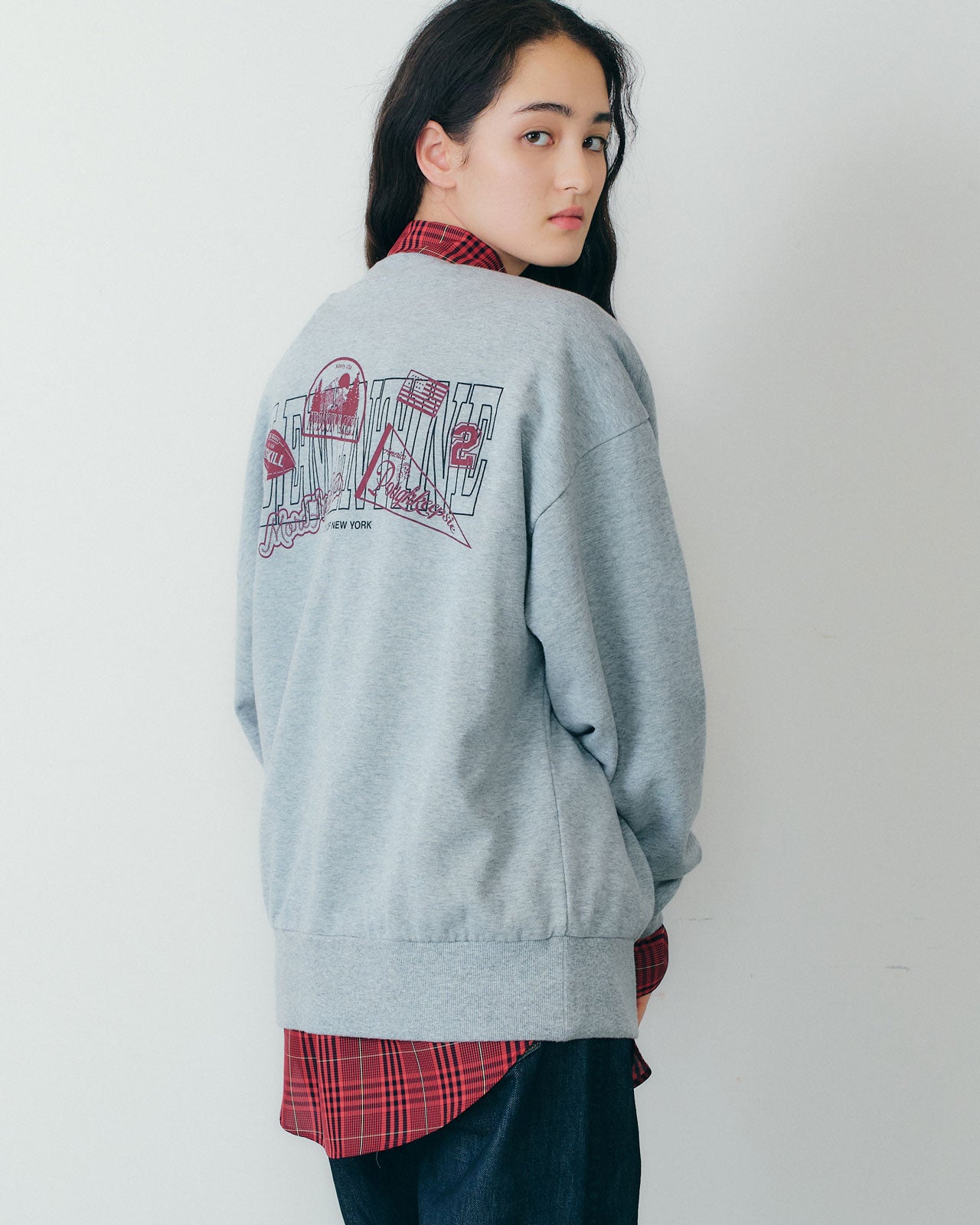 キャッチーなバックプリントが、おしゃれのテンションを上げてくれます。 ミニ裏毛仕様の薄手素材のため、涼しくなってきた秋口からハイシーズンまでご着用いただけます。1枚はもちろんインナーとしても便利な厚さのスウェットです。