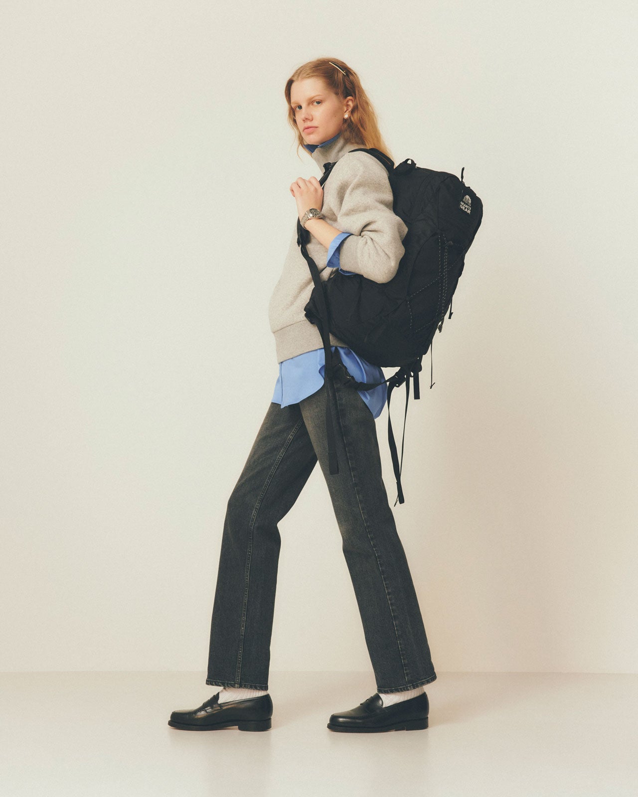 コンパクトTシャツやオーバーサイズのシャツ、そしてニットと相性良しのデニムのストレスフリーな履き心地の1本です。