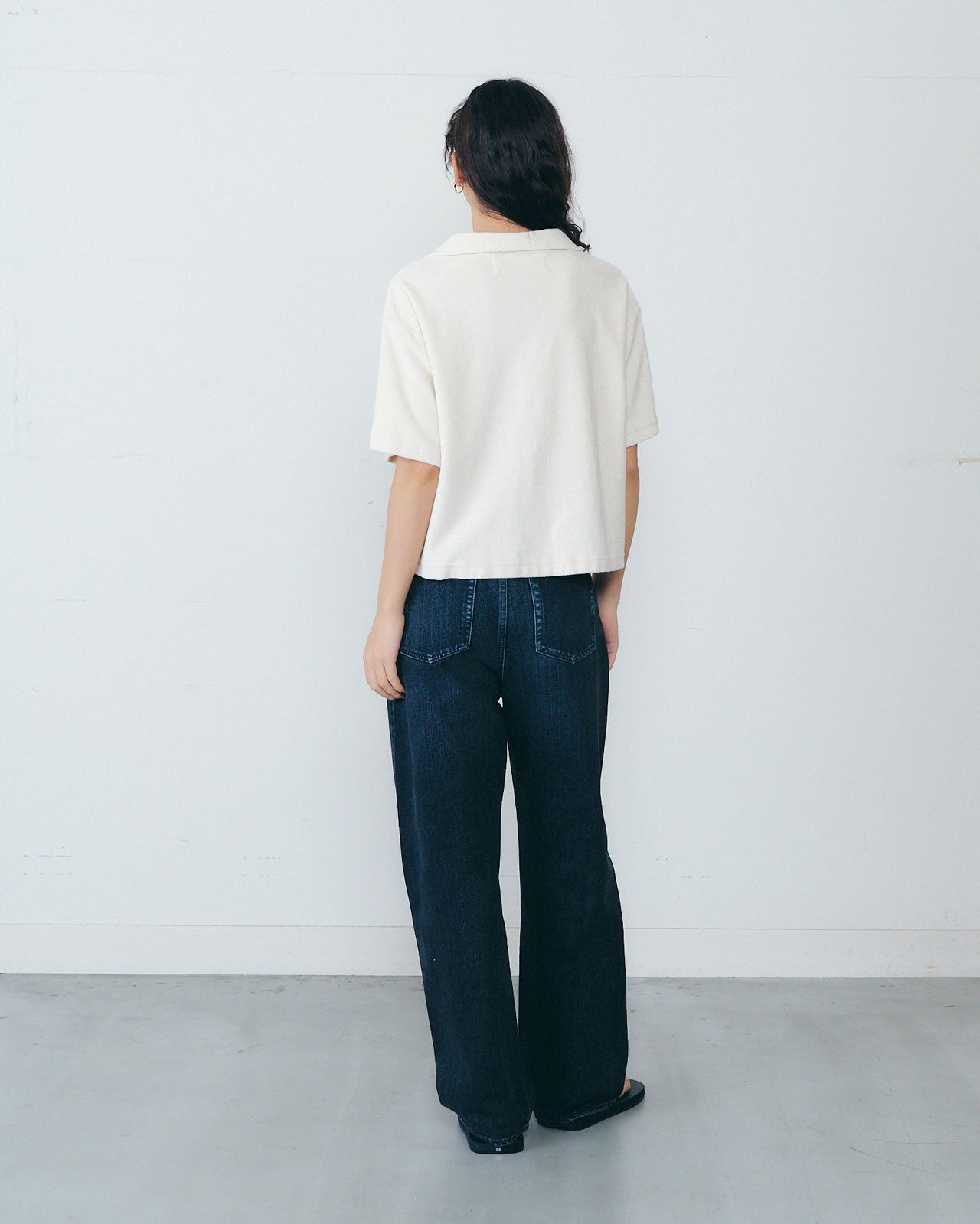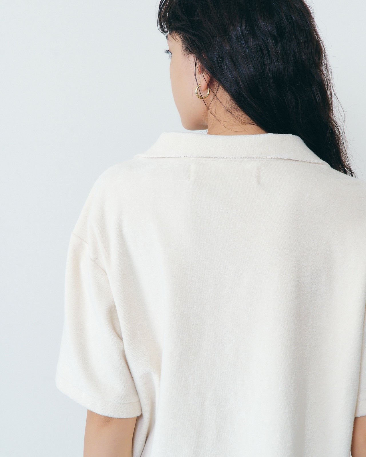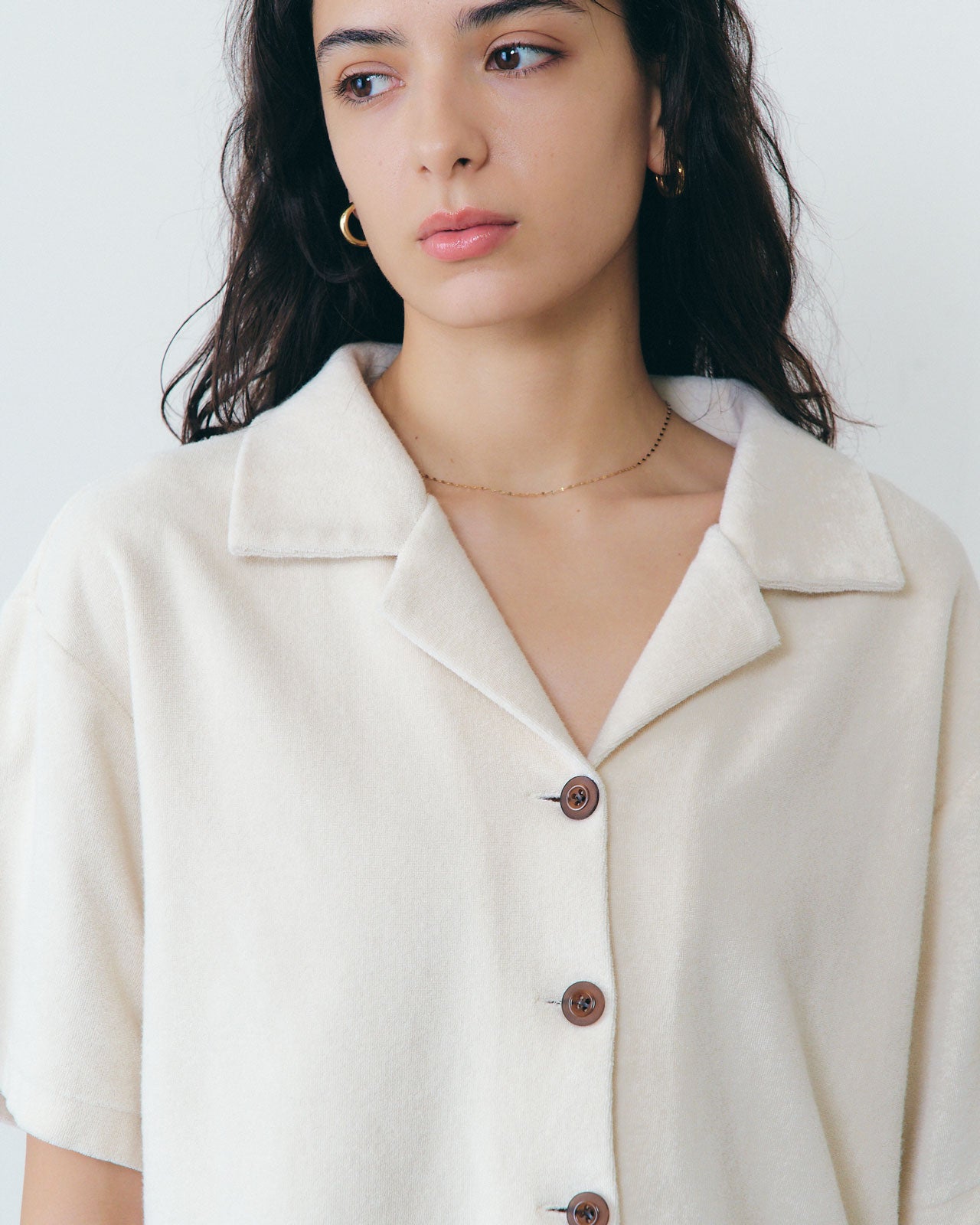 ふっくらとしたパイル素材を使った半袖の開襟シャツ。