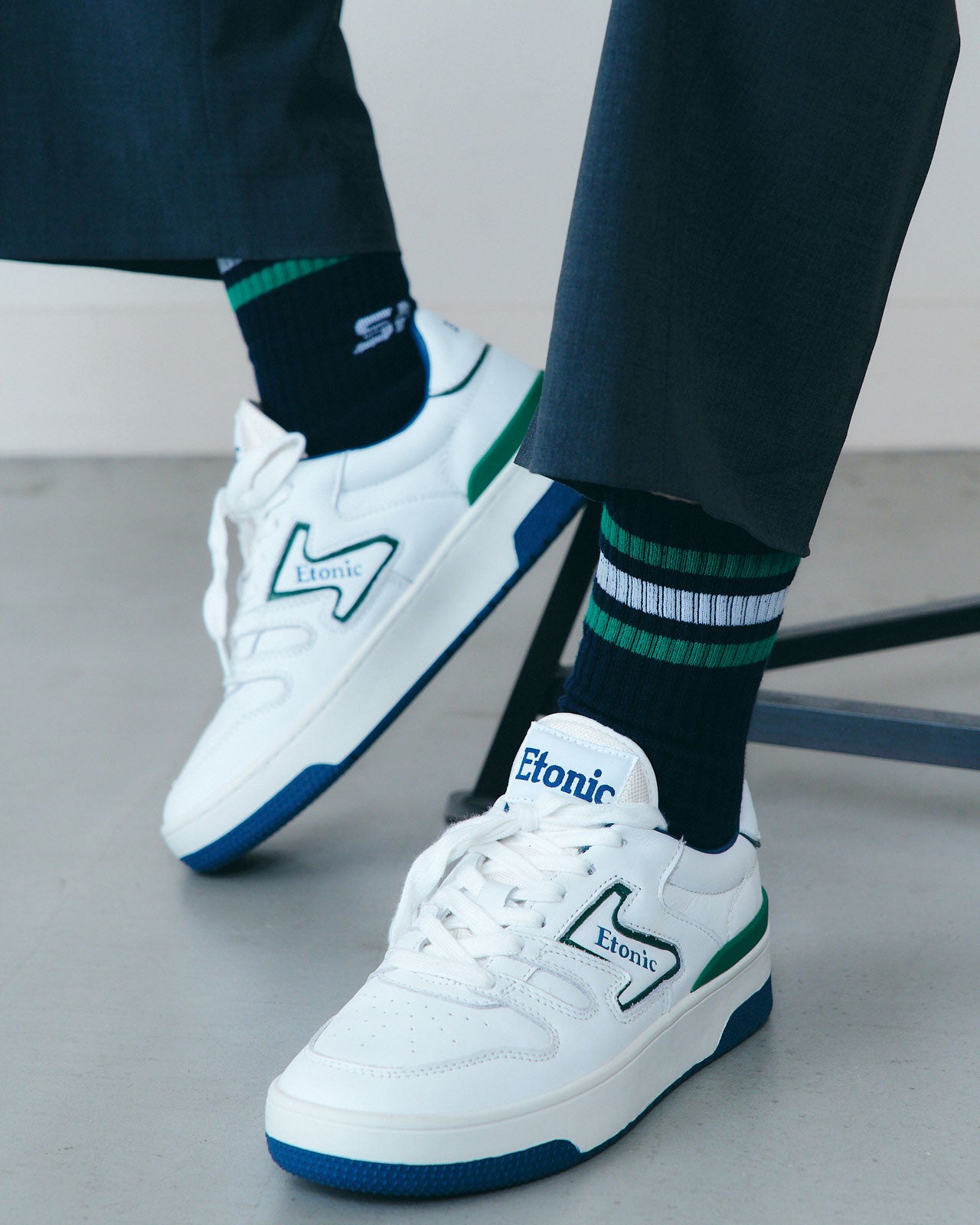 新型のスケーターソックス。3本ラインとかかとのロゴがアクセントになっています。厚手のしっかりとした質感です。スポーティースタイリングのアクセントに!
