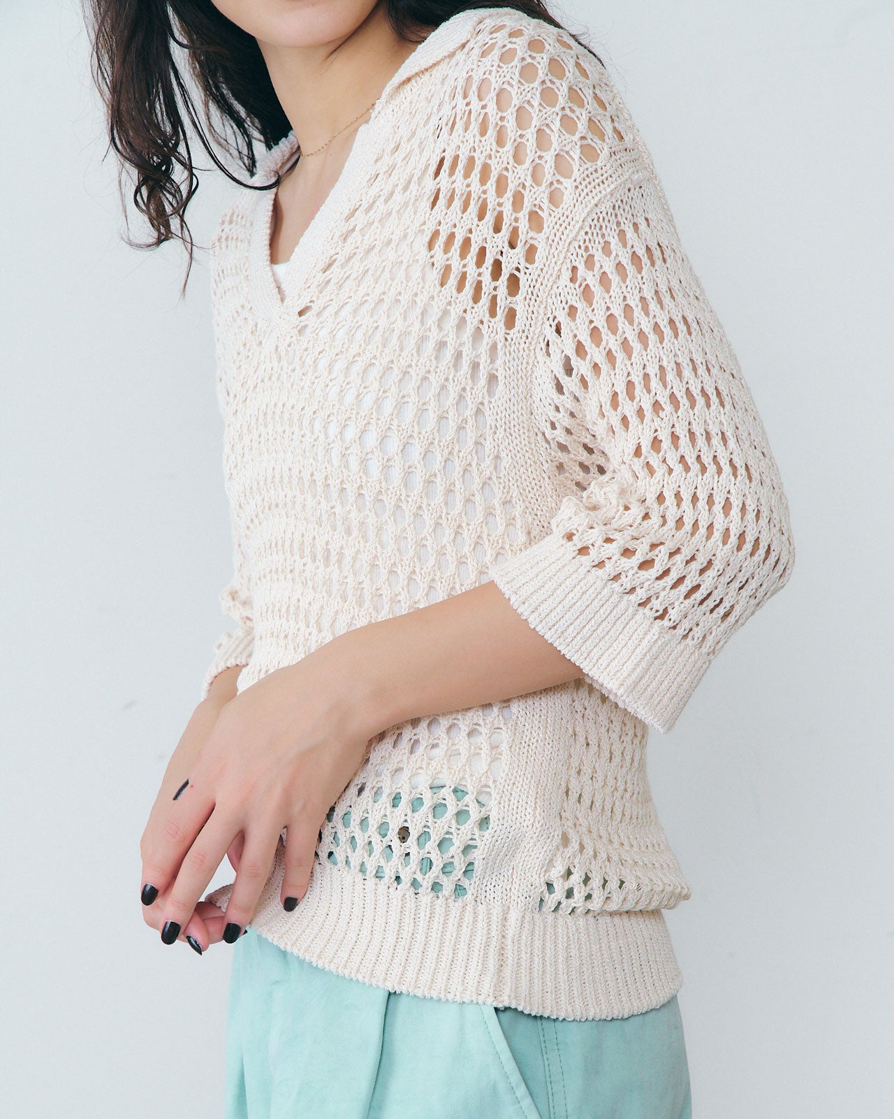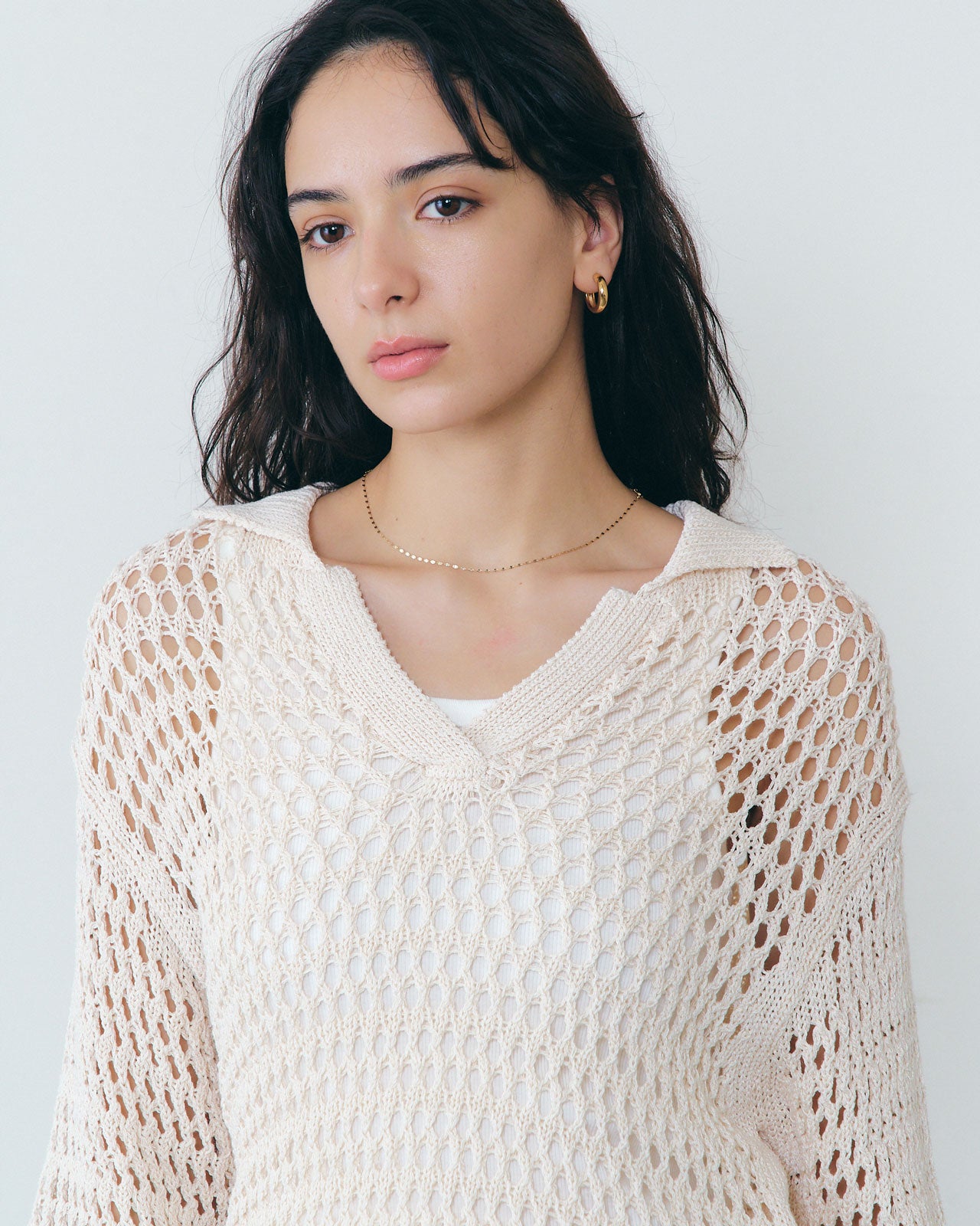 スキッパーデザインのポロシャツを涼しげなメッシュニットで表現。