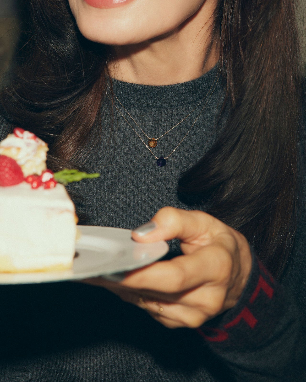 キャンディのようにカラフルでポップなカラーストーンを使用し、冬のコーディネートを色とりどりに際立たせるネックレスとピアスをシリーズでご用意いたしました。