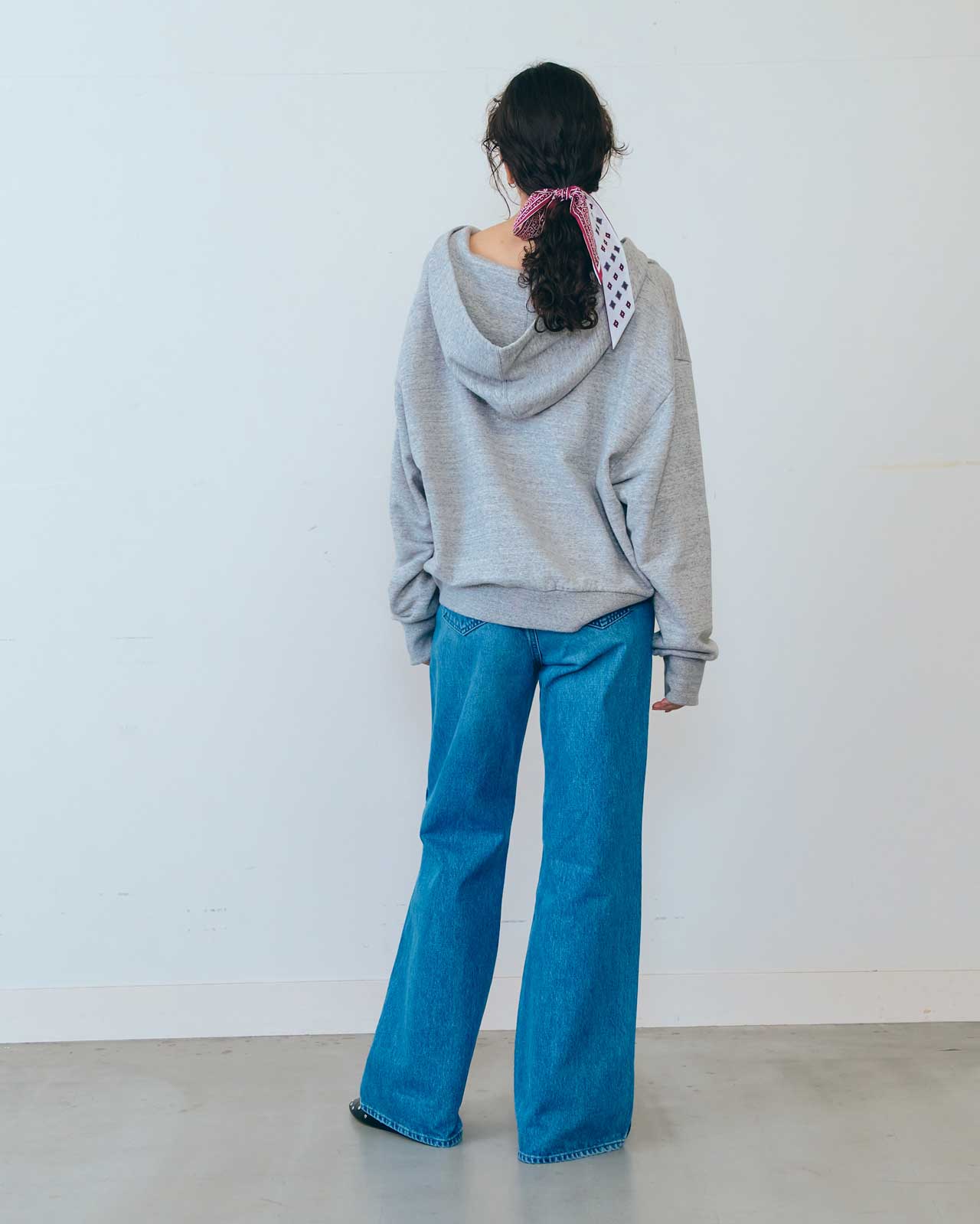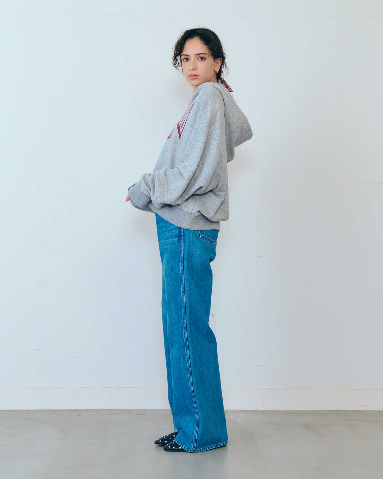 落ち綿をリサイクル混紡した環境にやさしい素材を使用。生地のムラ感を生かしたふんわり柔らかな質感がヴィンテージムードを加速。着丈は短め身幅はゆったりで、パンツと合わせた時にバランスの良いシルエットに。フロントにはNYロゴを大胆にプリントしました。フロントのカットがヴィンテージ感を演出。1枚でもシャツを重ねても。カットが効いた新鮮なムード漂うスウェットです。