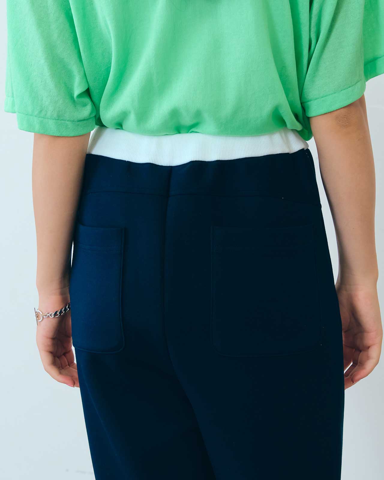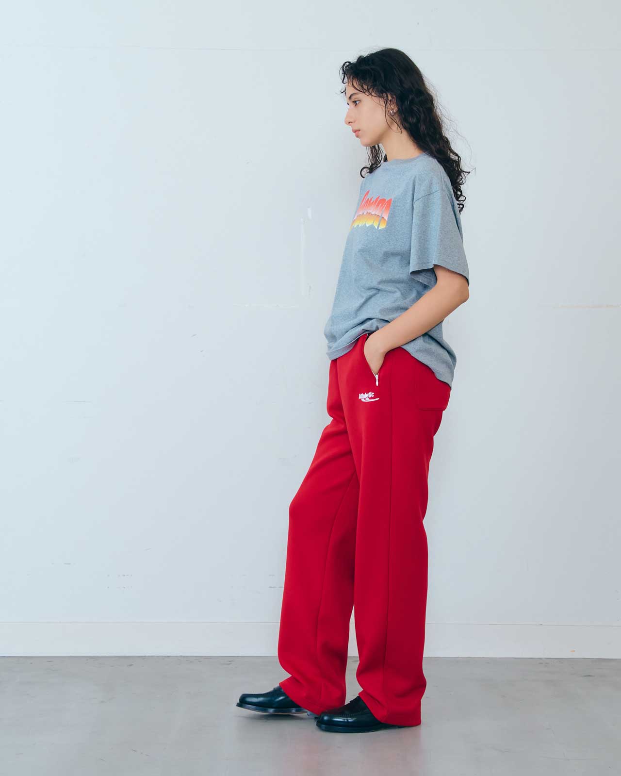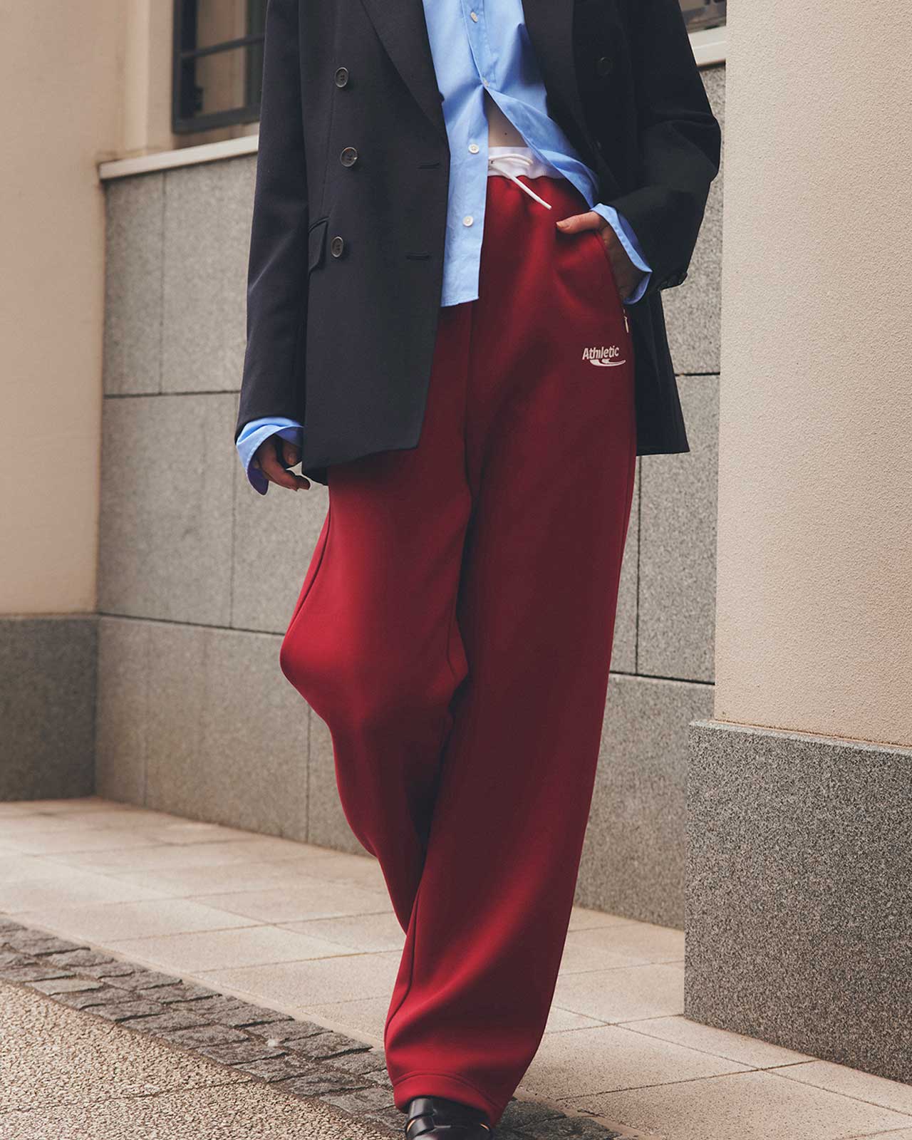 ジャージながら、リュクスなムード漂うワイドシエウエットのトラックパンツ。ダンボール素材を使用しているため、ハリ感のある軽やかな着心地が魅力です。反発性がある生地は体のシルエットをひろわず立体感のあるシルエットを生み出します。コード、ファスナー、白のロゴがスポーティなムードを盛り上げます。あえてかっちり目のシャツを合わせて、トラッド&スポーツの大人の着こなしをお楽しみください。