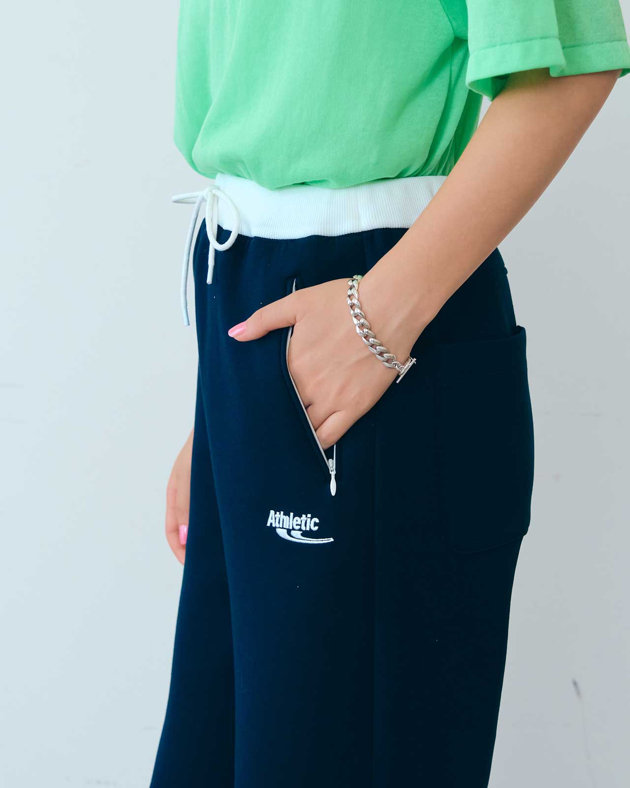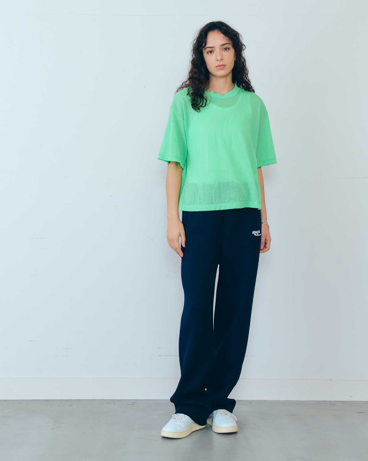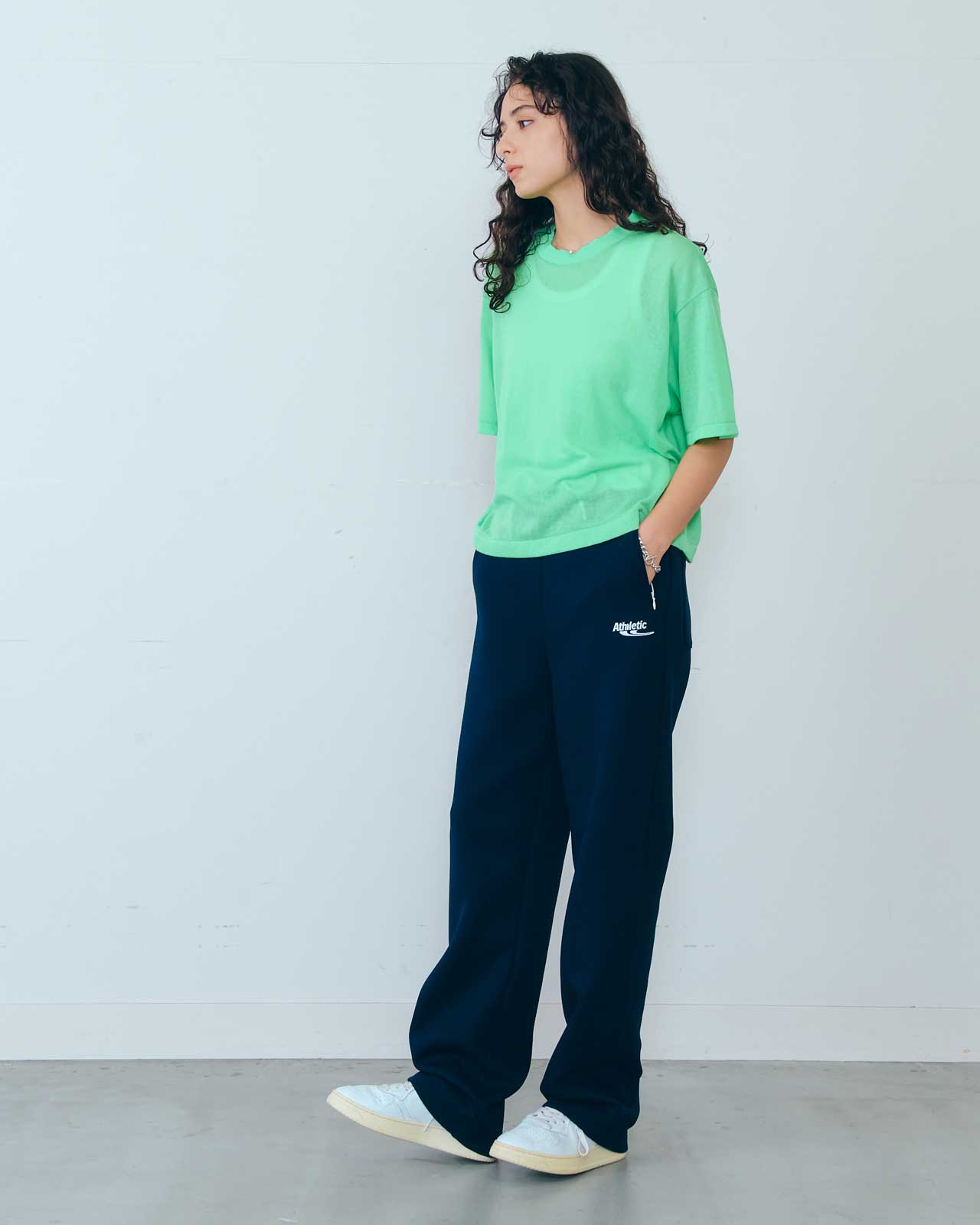 ジャージながら、リュクスなムード漂うワイドシエウエットのトラックパンツ。ダンボール素材を使用しているため、ハリ感のある軽やかな着心地が魅力です。反発性がある生地は体のシルエットをひろわず立体感のあるシルエットを生み出します。コード、ファスナー、白のロゴがスポーティなムードを盛り上げます。あえてかっちり目のシャツを合わせて、トラッド&スポーツの大人の着こなしをお楽しみください。