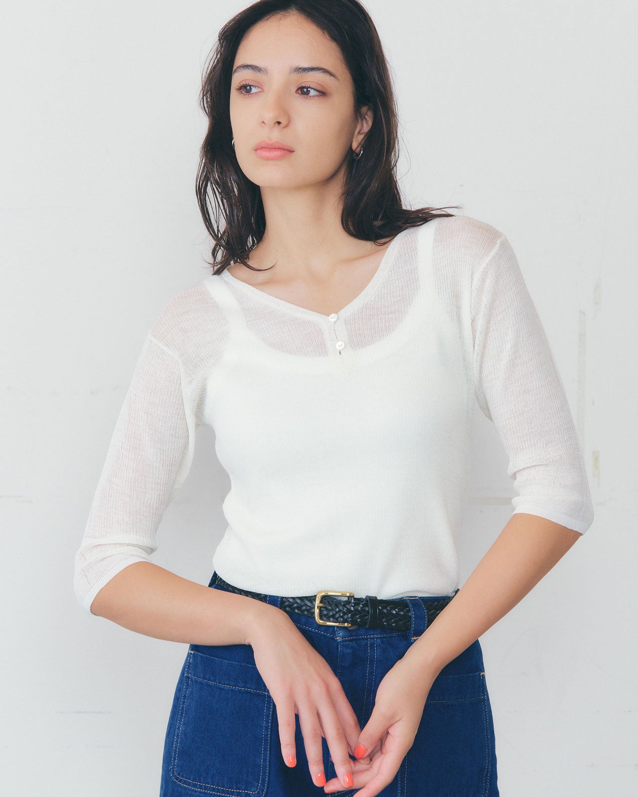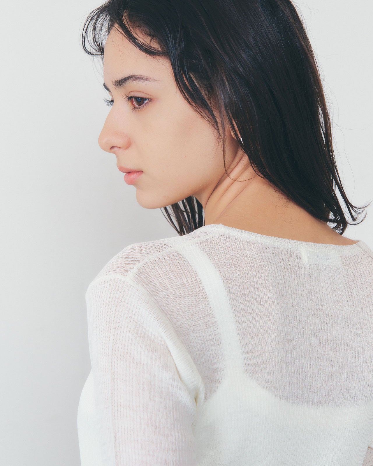 深すぎず浅すぎない絶妙なネックラインにこだわりました。シンプルながら着心地の良さにこだわったデザインです。シャツやカーディガンとの重ね着にもぴったりの、新しい定番アイテムです。