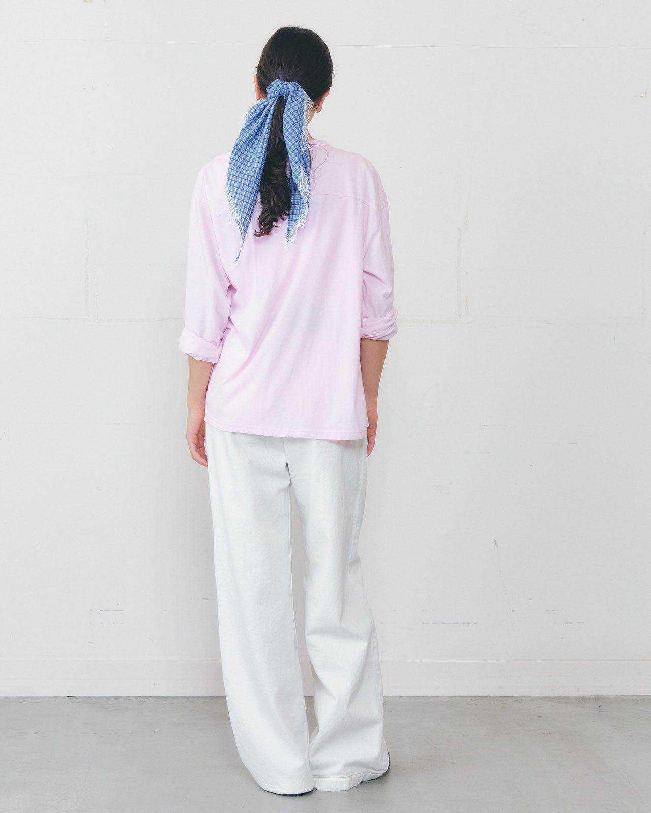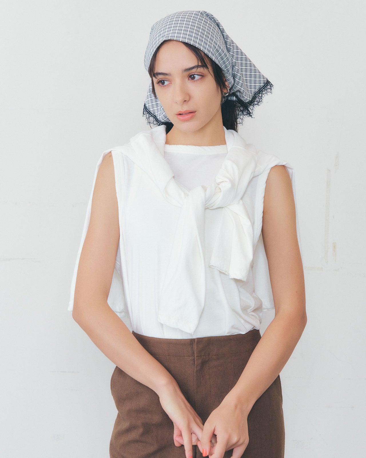 80年代のアーカイブ生地を現代の技術でリメイクしたブランドオリジナルのチェックを使用し、複雑なドビー織りと色合いにこだわり、上品な表情をプラスしています。頭やウエストに巻いてコーディネートのアクセントに。また、同素材のDOBBY CHECKED BLOUSEやDOBBY CHECKED HALF SLEEVE SHIRTとセットで合わせるのもおすすめです。