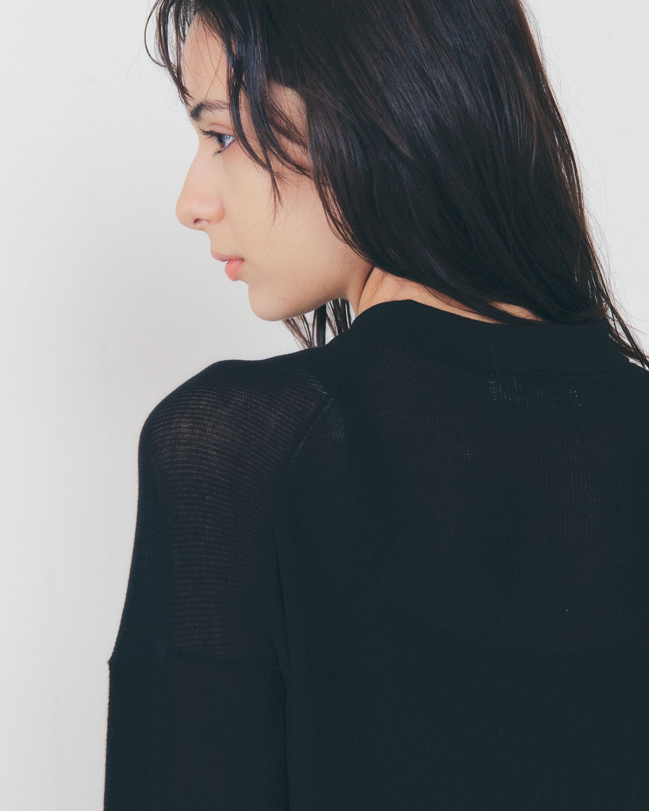 14ゲージの片畦編みによる小ぶりな襟付き長袖ニットカーディガン。飽きのこないデザインのため、長くご愛用いただけます。